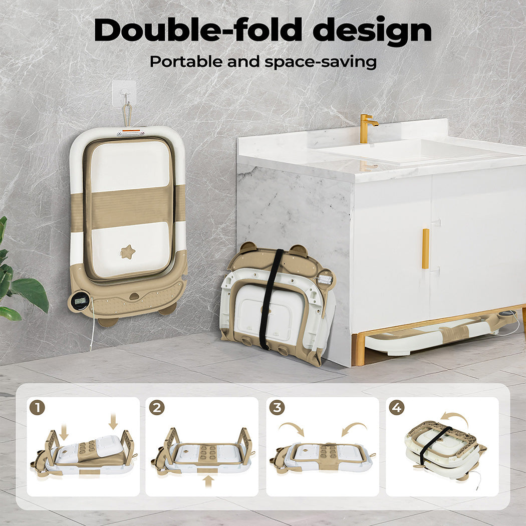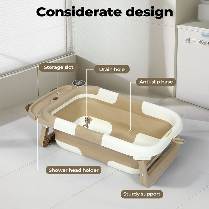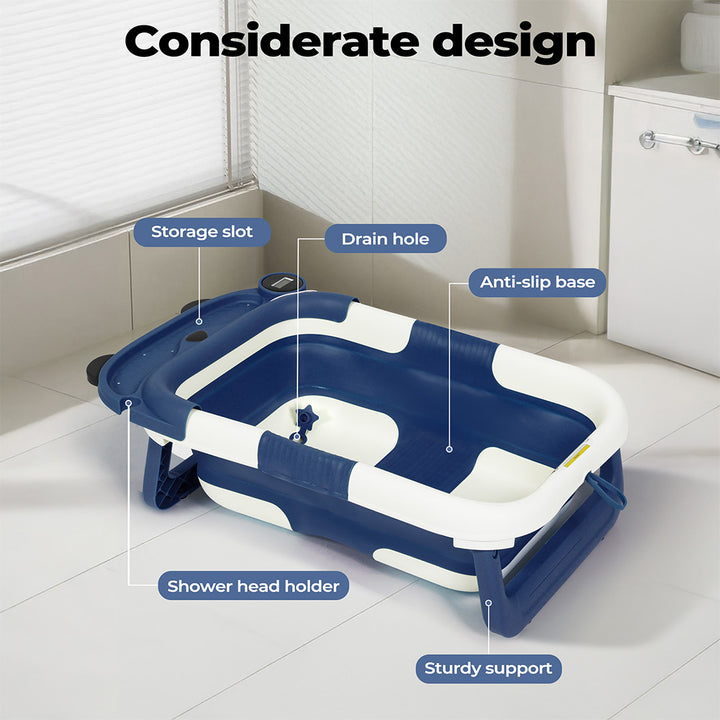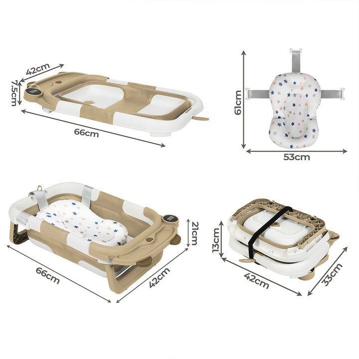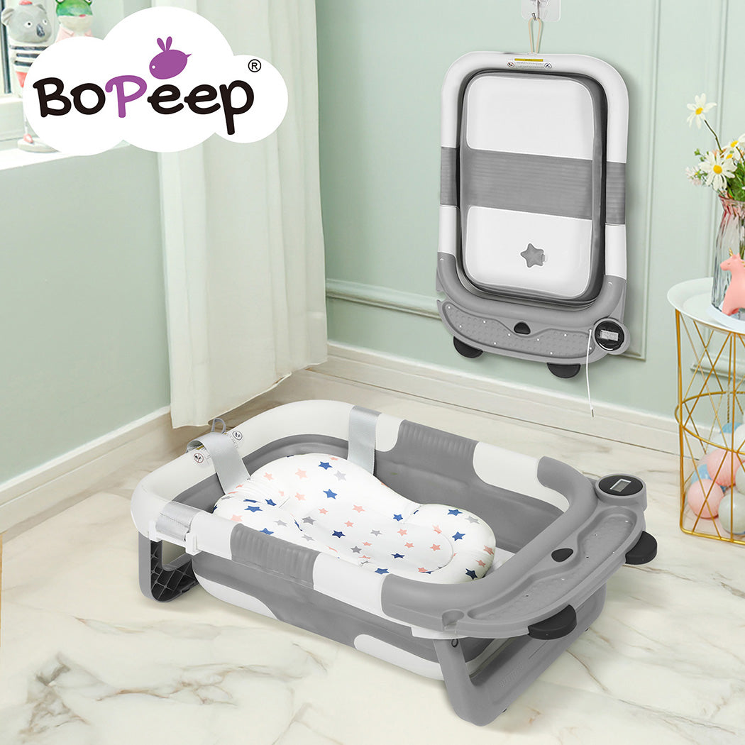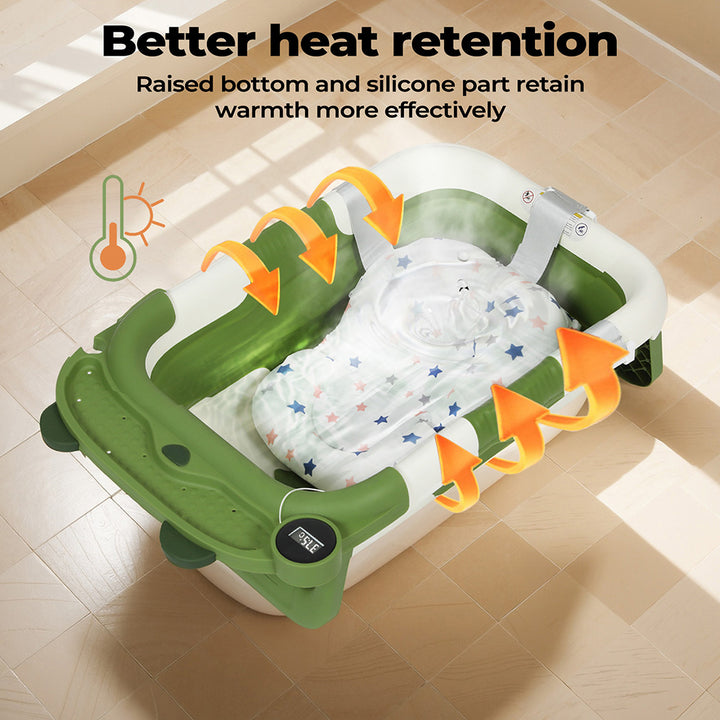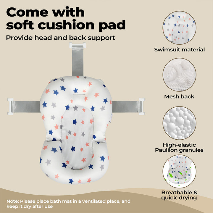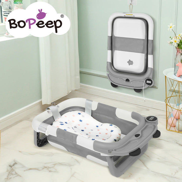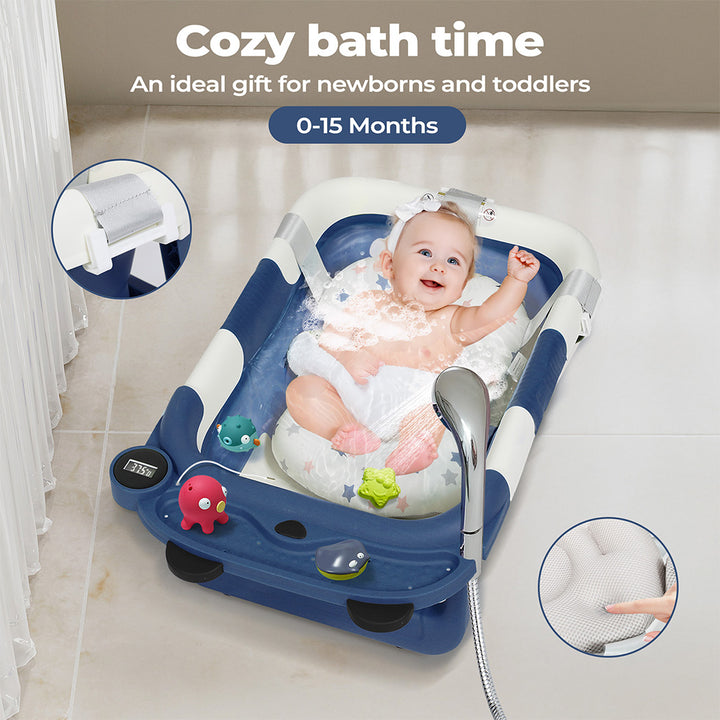 Introducing our Baby Bathtub Set, specially designed for newborns infants aged 0-15 months. This innovative bathtub features a visible temperature sensor that allows parents to monitor and adjust water temperature in real-time, preventing burns and ensuring a comfortable bath for your little one. The soft cushion pad provides gentle support to your baby’s spine, mimicking the comfort of the womb and promoting healthy spinal development. The bath mat is made from quick-drying fabric, making it easy to dry and preventing mold growth.