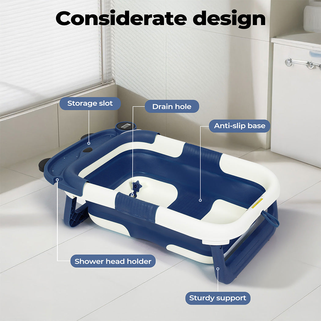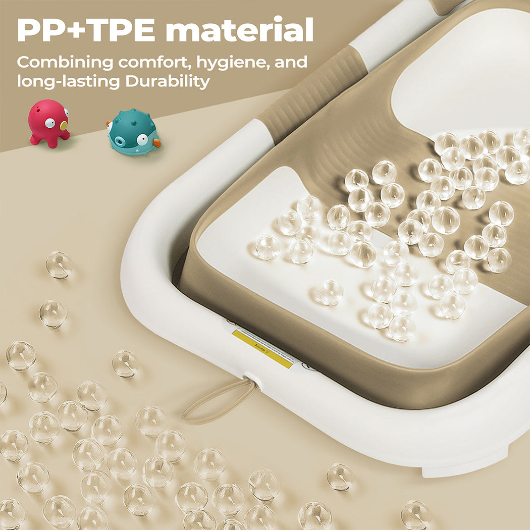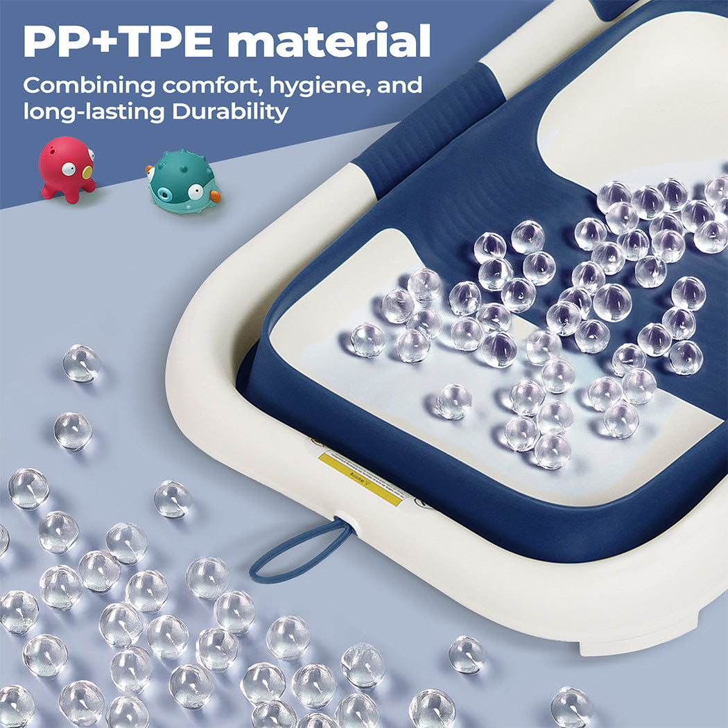 Made from high-quality, eco-friendly PP and TPE materials, our bathtub is non-toxic, BPA-free, and safe for your baby’s sensitive skin. The non-slip pads ensure stability on any flat surface, making bath time worry-free.
